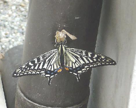 偶然見た、“あげは蝶”誕生の瞬間です。この後元気に大空に舞って行きました