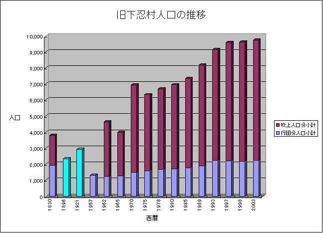明治期の鉄道建設は近代国家(産業国家)の基盤造りであった。地中に張る根のように養分を循環させ太い幹やたわわな枝、滋養ある果実を実らせる基となった。一方で農村は都市への人口流出、軽工業の割安な原料供給地として収奪された。先に揚げた「旧下忍村の人口動態」は、旧下忍村が現代と近世との狭間に位置していたのが見てとれる。吹上に開設された駅は磁石が砂鉄を吸い寄せるように人々を引き寄せた。