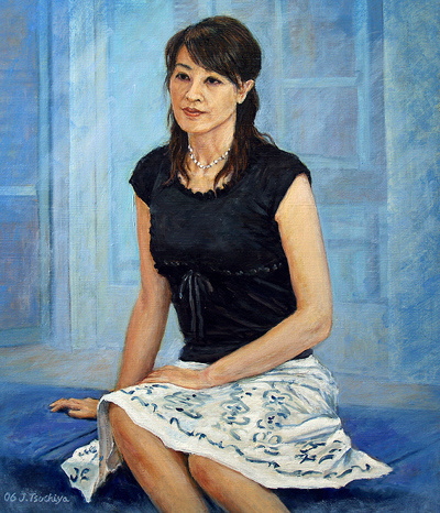 婦人像(スケッチ会より) F10 2007年 深谷公民館で、月に2回ほど行っている 人物写生会のモデルを描きました。 背景で苦労しました。このモデルさんは 元ミス埼玉とのことです。