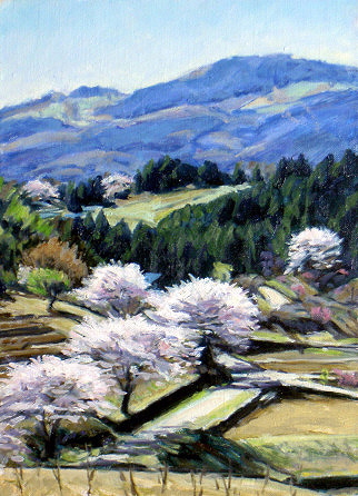 萩 平 F4 2004年深谷市 市民展出品 何度も描いていますが、東秩父の山間地にある 萩平という私の好きな場所です。 春の桜の頃には必ず写生に行きます。 ハイカーも大変多いです。 東京で暮らす人には近くて手頃な リフレッシュ出来る場所なのでしょうか。