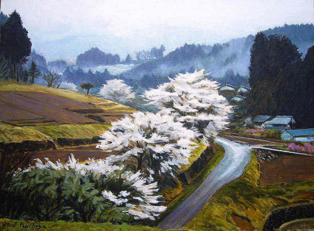 今回2回目の桜を描いた作品で春雨の中で桜がひときわ美しさを増しています