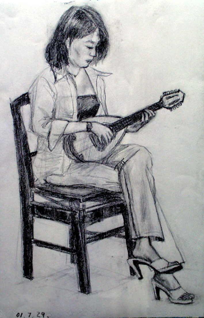 マンドリンを弾く少女