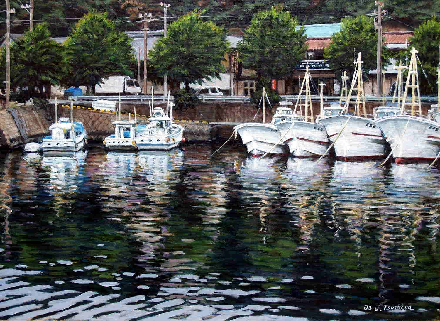 水面に映る舟の影のゆらめきをを