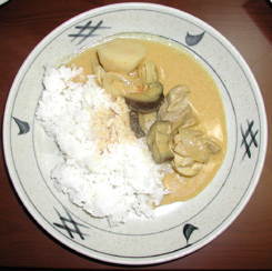 タイカレーを作ってみました。 (嫁さんがだけど・・・) ココナッツミルクの元、 鷹の爪、カレーパウダーを 混ぜ混ぜして調理。 鷹の爪をほとんど入れなくても かなり辛い!!! 結構いけるのでは?? |