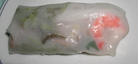 | 近くのスーパーでライスペーパーを売っていたのでGET。 ついでにライスペーパーのたれも買っちゃいました。 外で食べると、エビのボリューム感が今一歩って感じだけど、 大きめのエビと鶏肉、チャーシュー、サニーレタス、春雨、パクチーを 水で戻したライスぺーぱーに包んで、たれを付けて食べてみる。 すんごく旨い。これからもやっちゃおう。 *そうそう、納豆をまいても美味しかったことを報告します。 |