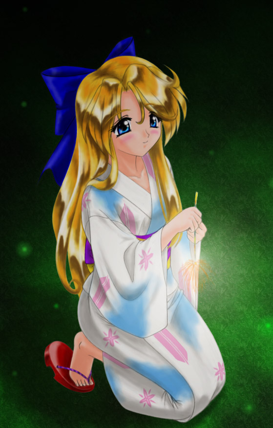 ・・・・・・あ、あはは、そりゃもちろん・・・・・・(汗)。 でも、メルルの浴衣姿って初めて見たな。それ、去年から持ってたのか? |