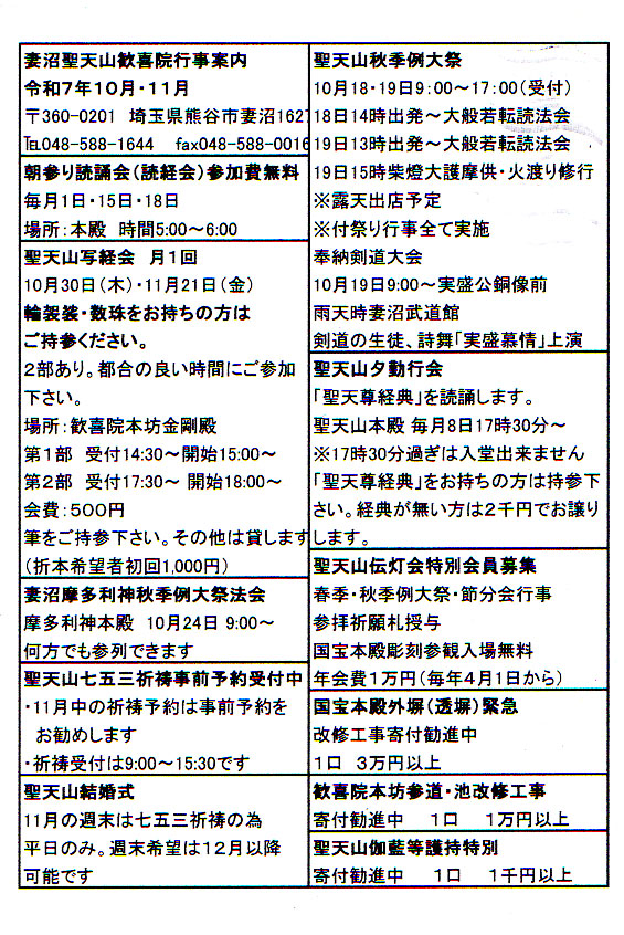 場所 当山本殿 参加自由 会費なし経典は「聖天尊経典」をお持ちの方は持参して下さい。