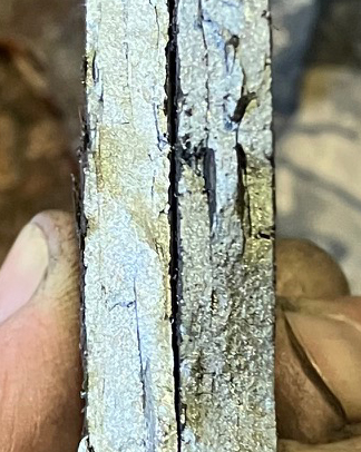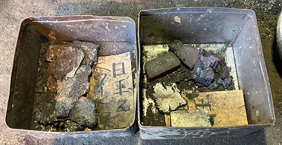 Flattened the tamahagane ingots and broke them in pieces to see the quality.