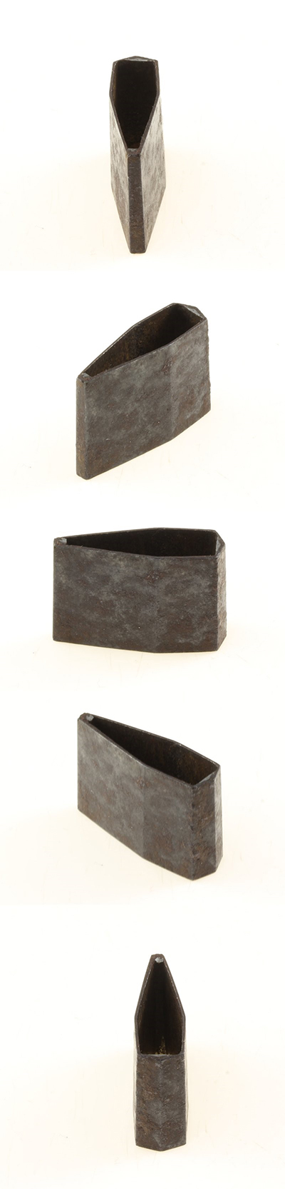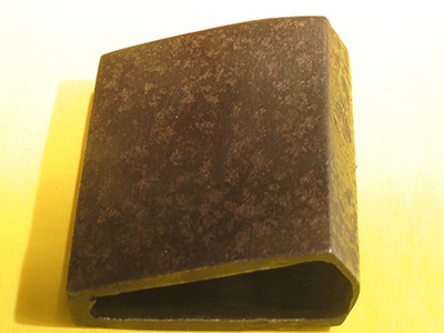 Outer steel is forged out. Dense and hard steel pieces and a little bit
