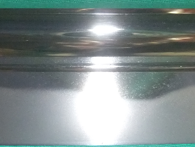 Hamon is made of large particles. It is bright. And its temper line (hamon