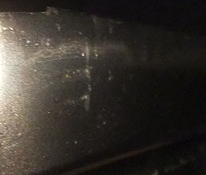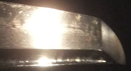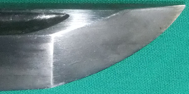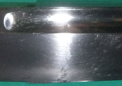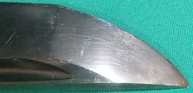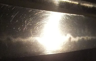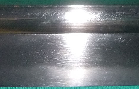 The blade surface has many scratches.