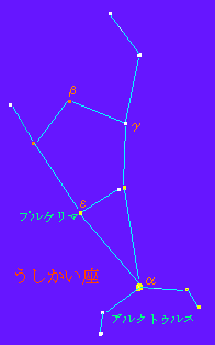 です。うしかい座は、二匹の猟犬をけしかけて、大熊を追いかけるカウボーイの姿