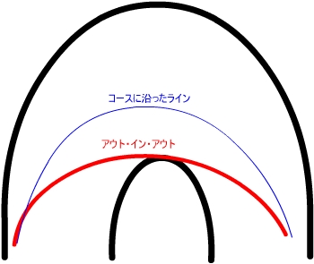 | 【アウト・イン・アウト】 まず、速く走るにはどうすれば良いでしょうか?答えは簡単です。スピードを上げればいいのです。しかし、実際のコースには様々なコーナーがあります。 コーナーを曲がる時、車には遠心力が働きます。遠心力が強くなると、その負担はタイヤにかかってきます。そして、タイヤの限界を越えると、車はどんどんコーナーの外にふくらんでいってしまいます。 ![]() この状態では、いくらアクセルを踏んでもスピードは上がりません。ですから、タイヤの限界を越えるような遠心力が働かないようにしなければなりません。しかし、遠心力はスピードが上がるほど強くなります。 速く走らなければならない、でも、速く走ると遠心力が強くなりタイヤが破綻してしまいスピードが出ない。スポーツ走行には常にこのジレンマがつきまといます。 遠心力を弱くする方法は二つあります。 一つは上で述べたように、スピードを落とす事です。 もう一つは、ハンドルの操舵角を小さくして、コーナーを大回りする事です。コーナーを大回りする事で回転半径を大きくして、遠心力を弱くするのです。 これは「アウト・イン・アウト」と呼ばれる、コーナリングの基本テクニックです。 ![]() コーナーに進入する時には、コーナーの外側から入り、コーナーの中ほどでは、コーナーの内側につき、コーナーから立ち上がる時には、コーナーの外側に向かって走る。こうする事で、道幅を目一杯使い、回転半径を大きくするのです。 ※ただし、コーナーを大回りするという事は、それだけ走行距離も長くなります。 |