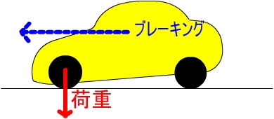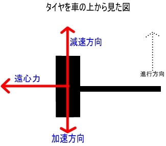 | 【タイヤのグリップとコーナリングプロセス】 ここでは、コーナリングのプロセスを以下のように大別してみます。 1.コーナリング初期 2.コーナリング中期 3.コーナリング後期 1のコーナリング初期とは、ブレーキング(ブレーキ操作)やアクセルオフ(アクセルを緩める事)などによってコーナーを曲がれるまでスピードを落とし、ハンドル操作を始めるものです。これはコーナリングの準備段階です。 スピードが出たままでは、遠心力により、コーナーを曲がりきれないので、スピードを落とさなければなりません。そして、スピードを落とす事で、車は「曲がりやすい状態」に変化します。 どういう事かというと、スピードを落とす事で、車は前のめり状態になり、この時、車の前輪には荷重がかかり、タイヤのグリップ(接地力)が上がります。前輪は操舵輪でもあるので、グリップが高ければ、ハンドル操作に応じやすくなるのです。(荷重移動) ![]() これは、タイヤに対して上から力がかかる事によるものです。 (消しゴムを消す時に、上から力を入れない時よりも、上から力を入れた方がよく消えるのと同じ原理です。) ただし、ブレーキングでタイヤのグリップをフルに使った状態では実は曲がりません。どういう事かというと、タイヤのグリップは車を上から見た時の横方向の力と縦方向の力の総和で成り立っているからです。 ![]() たとえば、タイヤのグリップを数値化して10としてみましょう。 ブレーキングの時にタイヤには縦方向の力がかかります。この力が10であった場合、このタイヤには横方向のグリップは無いのです。 10(縦方向の力)+0(横方向の力)=10(タイヤのグリップ) この状態ではハンドルを操作しても曲がってくれませんので、厳密には、フルブレーキング→ブレーキを緩めつつハンドル操作、になります。 また、どんなに荷重移動して前輪のグリップを高めても、無限に高まるわけではなく、やはり、縦方向のグリップを越えれば、ロックしてしまいます。 この状態では減速能力は極端に落ち、当然、ハンドル操作も効きません。 ですが、ロックする寸前はタイヤのグリップが最大限に発揮されている状態でもあるので、この状態を持続できれば、短時間で目的の速度まで減速ができます。それには、ロックする寸前で、わずかにブレーキ操作を弱め、また踏み込むという操作が必要になります。(ポンピングブレーキ) ただし、ABS(アンチロックブレーキシステム)を搭載している車の場合、コンピュータが自動的にこの操作をしてくれます。 このようにしっかりとブレーキングをして、目的の速度まで減速する作業が終わってから、わずかにブレーキを緩めながらハンドルを操作する事で、車は曲がり始めます。 ですから「なかなか曲がらない」と思っている人は、フルブレーキのままハンドルを操作している可能性もあります。 2のコーナリング中期とは、車を仮想の走行ラインに乗せて、それを維持するものです。 仮想の走行ラインとは、アウト・イン・アウトのように、ドライバーがイメージしたラインです。このライン上をなるべく操舵角を小さくして走る事で、タイヤの限界をフルに使ったコーナリングが可能になります。 タイヤのグリップについてはコーナリング初期の所で説明したように、縦方向と横方向の総和で成り立っていますので、コーナリング中にたとえば横方向に10の力がかかっている時は、アクセルやブレーキ操作をしても、グリップしません。 この状態でアクセルを踏み込めば、タイヤは空転し、逆にブレーキ操作をすればロックしてしまいます。もし、そうならないとするならば、それはタイヤのグリップをフルに使った状態ではないとも言えます。 そして、タイヤの限界を引き出すためには、コーナリング中はアクセルはエンジンの回転を維持するように操作します。(パーシャルスロットル) また、タイヤに横方向の力が目一杯かかっている状態でハンドルをさらに切り込んだりすると、遠心力が高まり、タイヤは限界を越えてしまいます。これ(タイヤの破綻)がフロントタイヤの場合は強いアンダーステアになり、リアタイヤの場合はオーバーステア→スピン、となります。 このような事から、コーナリング中の不用意なハンドル操作は禁物という事がわかると思います。 初心者にありがちな、「コーナリング中盤でさらにハンドルを切り込むというのがありますが、これで難なくコーナーを抜けられるならタイヤを限界まで使っていないという証拠でもあり、逆に「姿勢が乱れる」「スピンしてしまう」「コーナーの外にふくらんでしまう」というのであれば、進入速度をもう少し落とすか、パーシャルスロットルにする必要があります。 コーナリング後期とは、コーナーの出口に向かって立ち上がるものです。 コーナーの出口が見えてきたら、徐々にアクセルを踏み込み、立ち上がっていかなければなりませんが、この時もタイヤのグリップは縦方向と横方向の総和で
