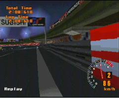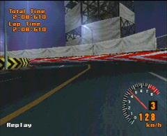 右コーナーからの立ち上がりでは左にある壁に多少ぶつかっても